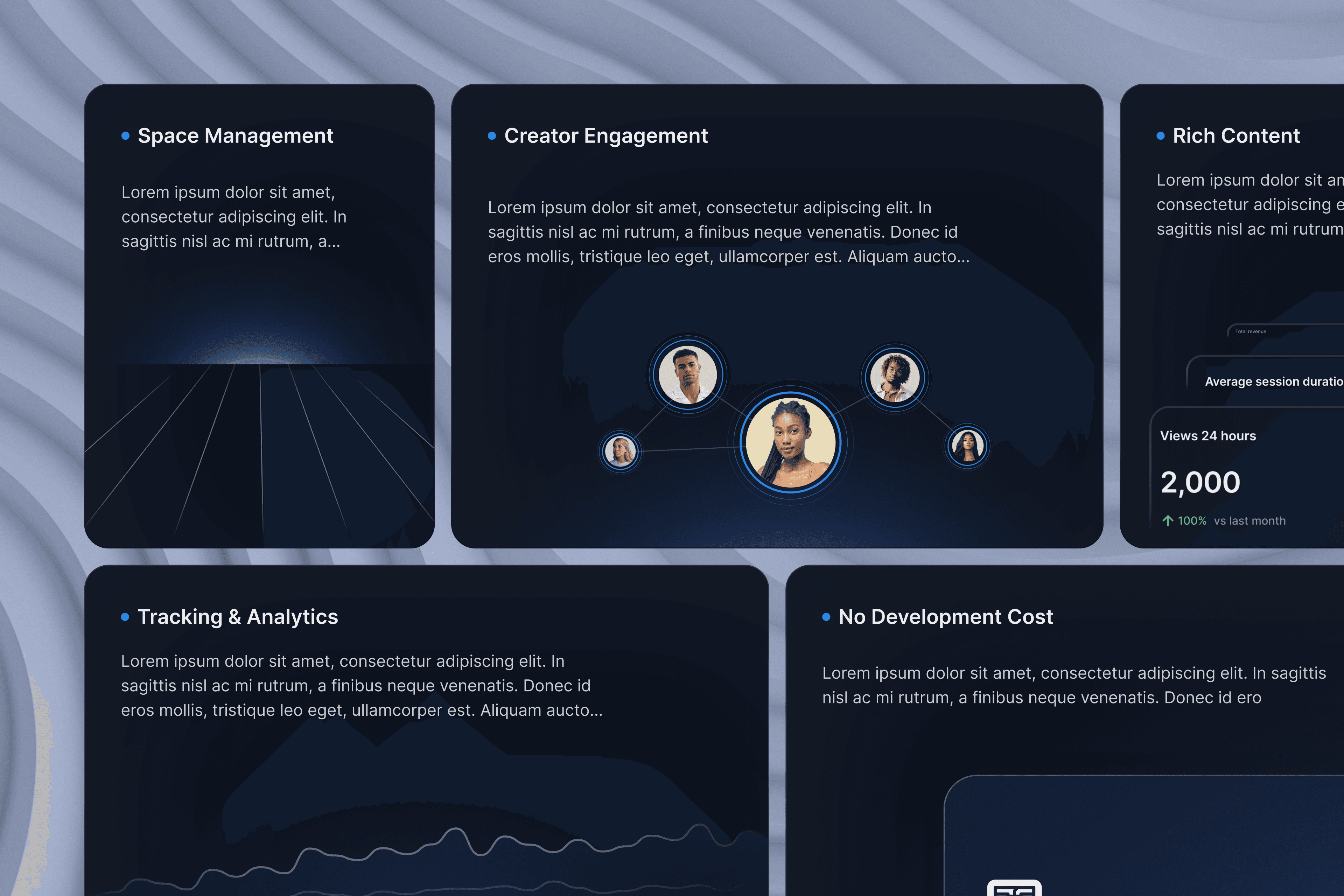 After establishing a strong UX framework, we designed pixel-perfect user interfaces and built a modular design system. This system was created to make future updates and features simple to implement. The result was a user-friendly, visually appealing platform with a modern metaverse aesthetic, empowering creators to efficiently share and access digital resources.