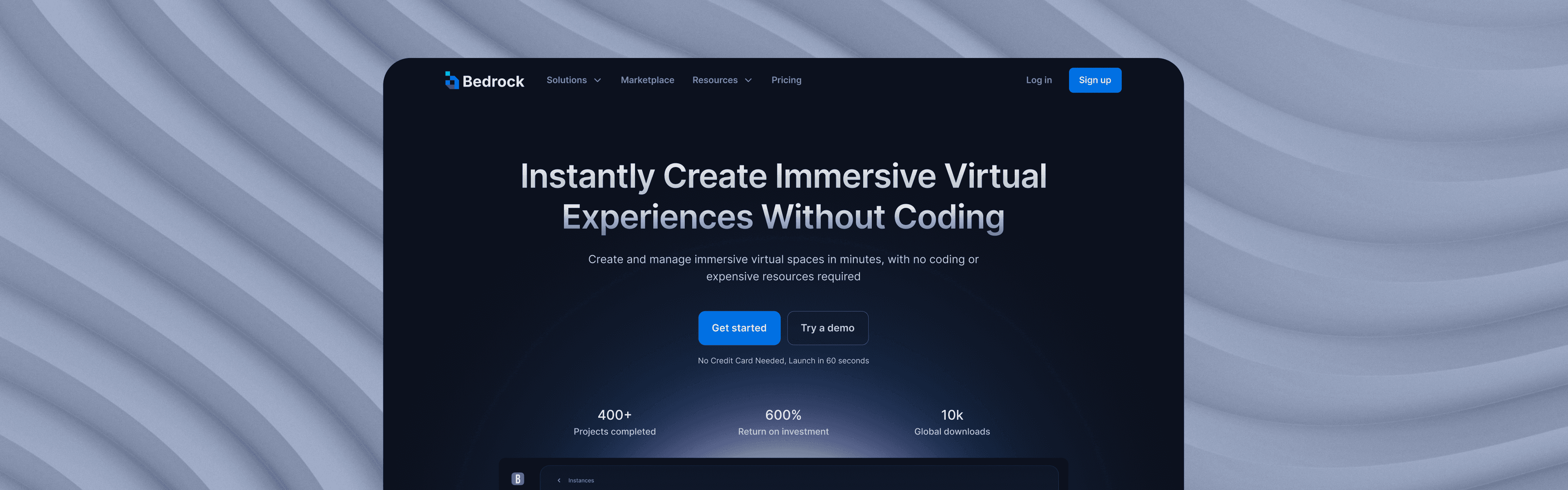 RFOX approached us with their exciting new project, Bedrock—a marketplace platform tailored for metaverse builders and creators. Their vision was to build an easy-to-use platform where creators could upload and share metaverse objects, assets, and plugins. Other creators could then easily buy or subscribe to these items for use in their own projects.
