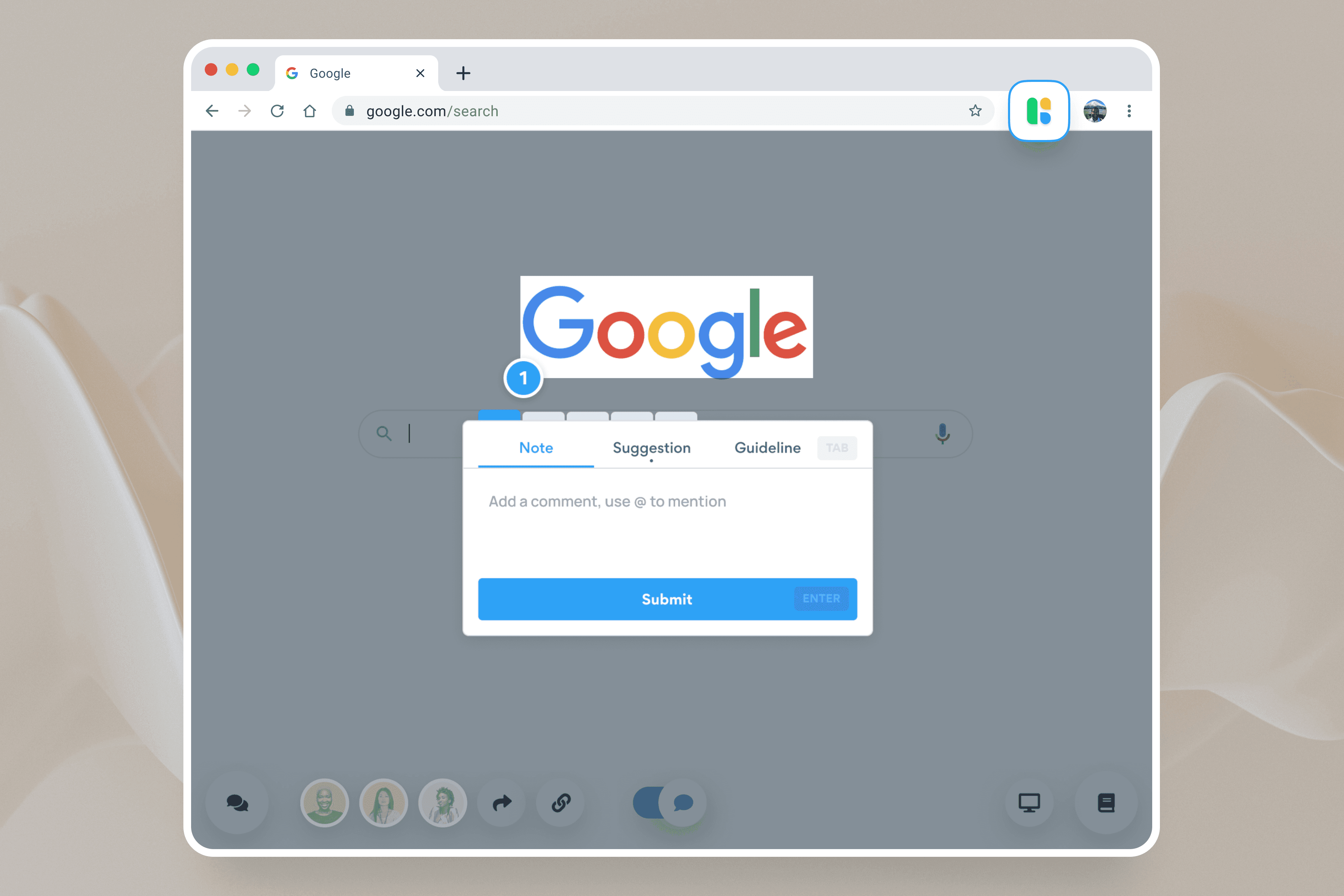 Our team took a strategic, user-centric approach, beginning with extensive UX research to identify the pain points experienced by users when performing heuristic analyses and collaborating on web feedback. After defining clear user personas and mapping user journeys, we crafted streamlined, unobtrusive UI designs ensuring the extension operated as a subtle yet effective overlay, enabling easy comment management without distracting from the underlying website. We then meticulously developed the Chrome extension, prioritizing intuitive interactions and integrating seamlessly with the supporting web application.